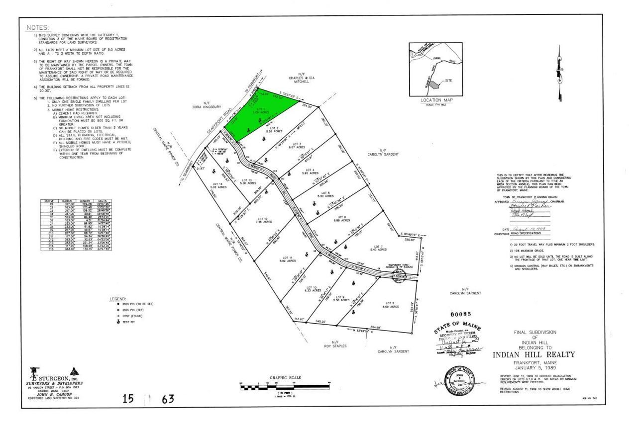 Frankfort - 5 Acre corner lot in a quiet country setting. On the corner of Searsport Road & Indian Hill Lane. 4 miles to down town Frankfort. 14 miles to Belfast and the Ocean. 20 miles to Bangor.